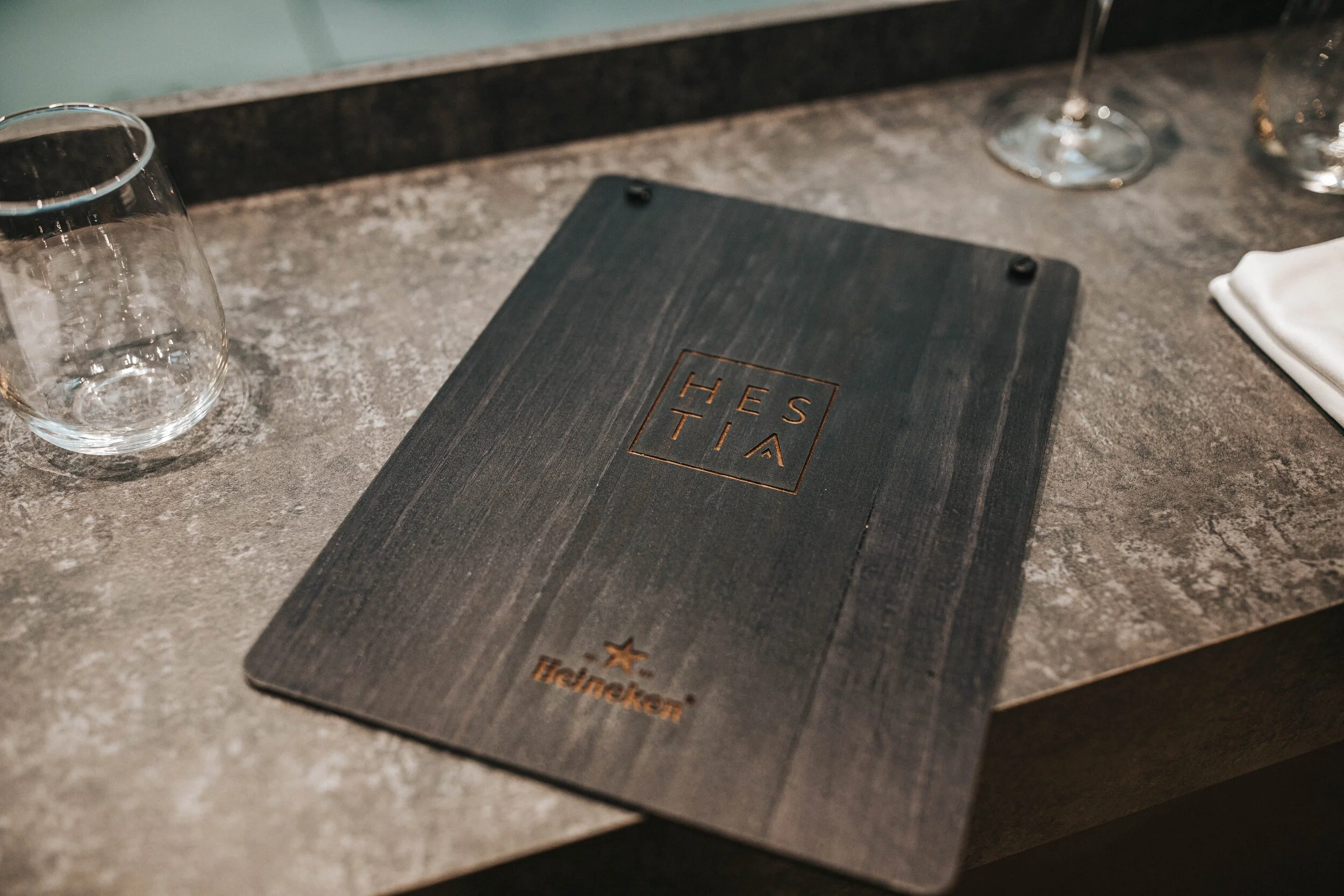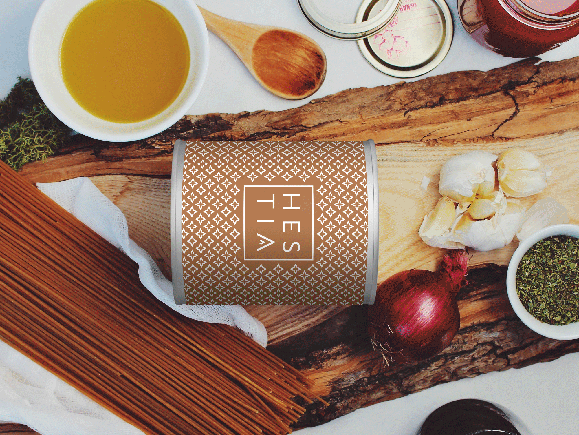 El logotipo y el diseño de la identidad corporativa se ha continúa con una línea de diseño simple, geométrica y expresiva destacando la llama de ‘Hestia’ como el elemento principal de la marcano. La llama es el elemento utilizado como recursos de estilo, patrones y elementos decorativos definen el universo del restaurante.